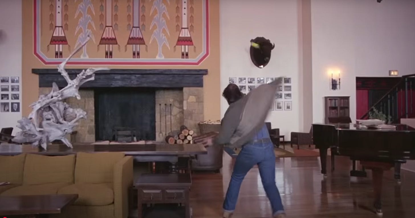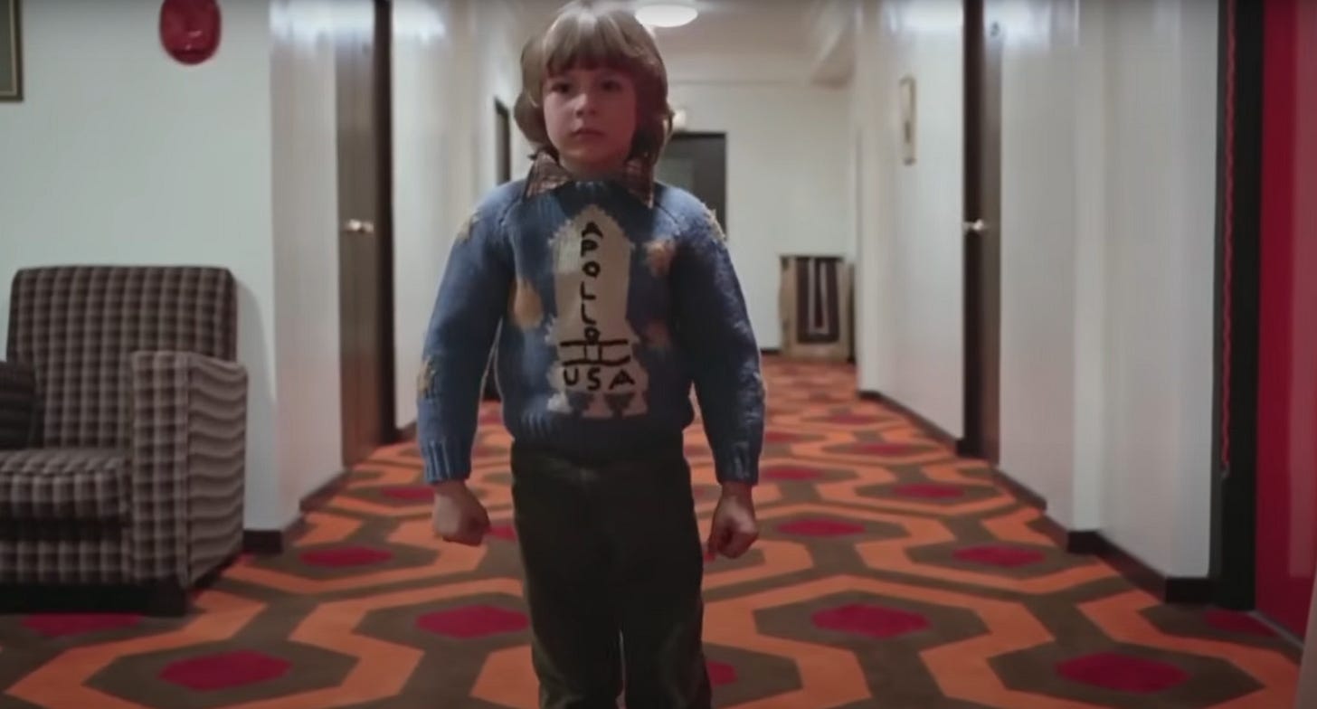 On this day in 1969 (July 21), Neil Armstrong and Buzz Aldrin set foot on the lunar surface, marking a new chapter in the history of mankind’s accomplishment. However, not everyone believes the official story, and some go so far as to suggest the footage from the Apollo 11 landing was faked. Who would be technically savvy enough to produce such a fabrication? Kubrick would lead to you to believe it was himself, and he’d like to enlighten you to the true nature of the American government with a film called The Shining.
